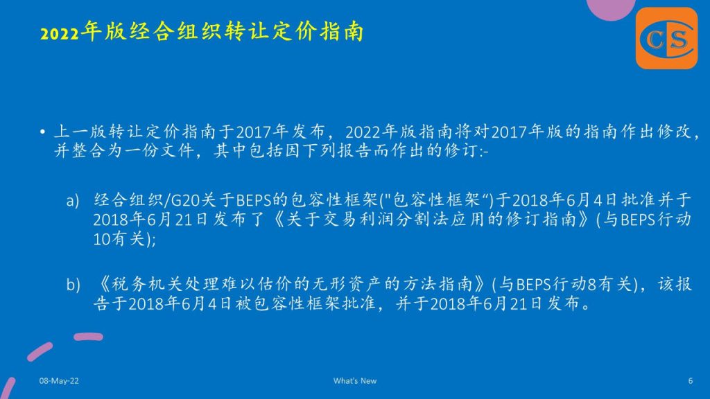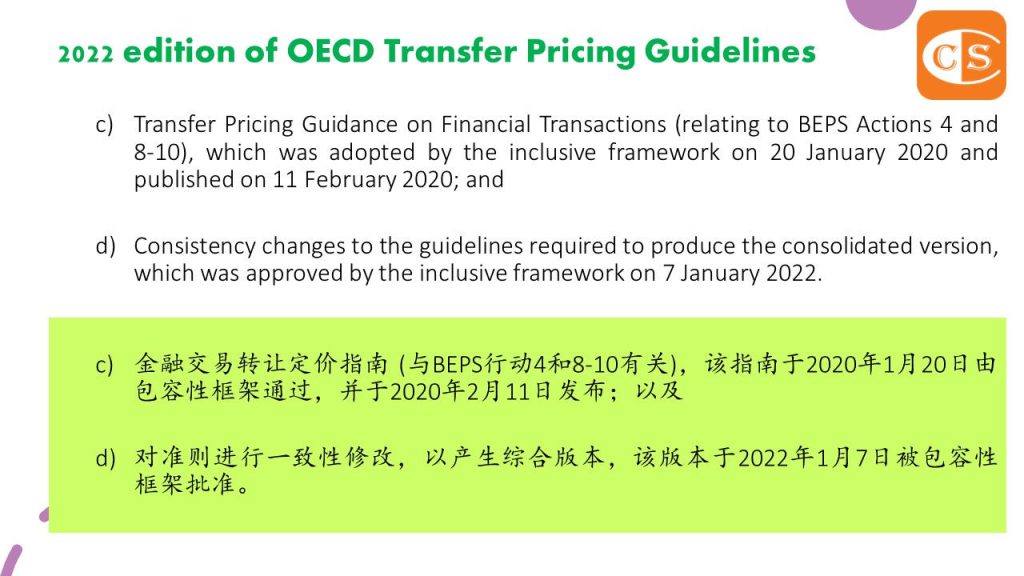 3. 上一版转让定价指南于2017年发布,是最新的版本。2022年版指南将对2017年版的指南作出修改,并整合为一份文件,其中包括因下列报告而作出的修订:-