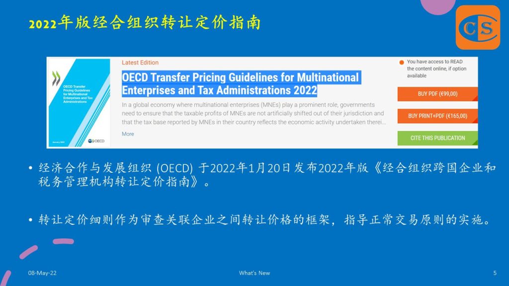1. 经济合作与发展组织(OECD)于2022年1月20日发布2022年版《经合组织跨国企业和税务管理机构转让定价指南》。