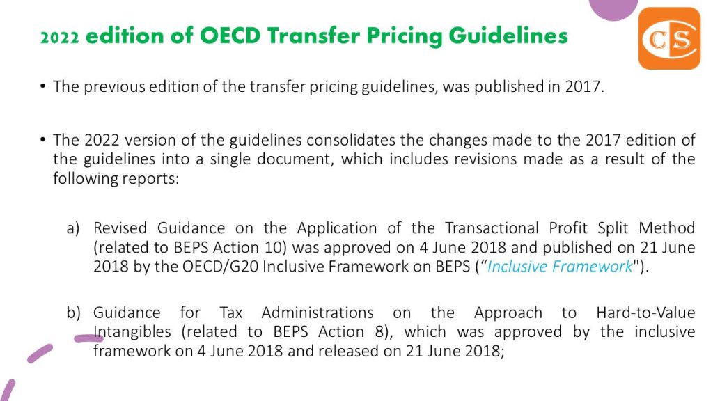 3. The previous edition of the transfer pricing guidelines, was published in 2017. The 2022 version of the guidelines consolidates the changes made to the 2017 edition of the guidelines into a single document, which includes revisions made as a result of the following reports:
