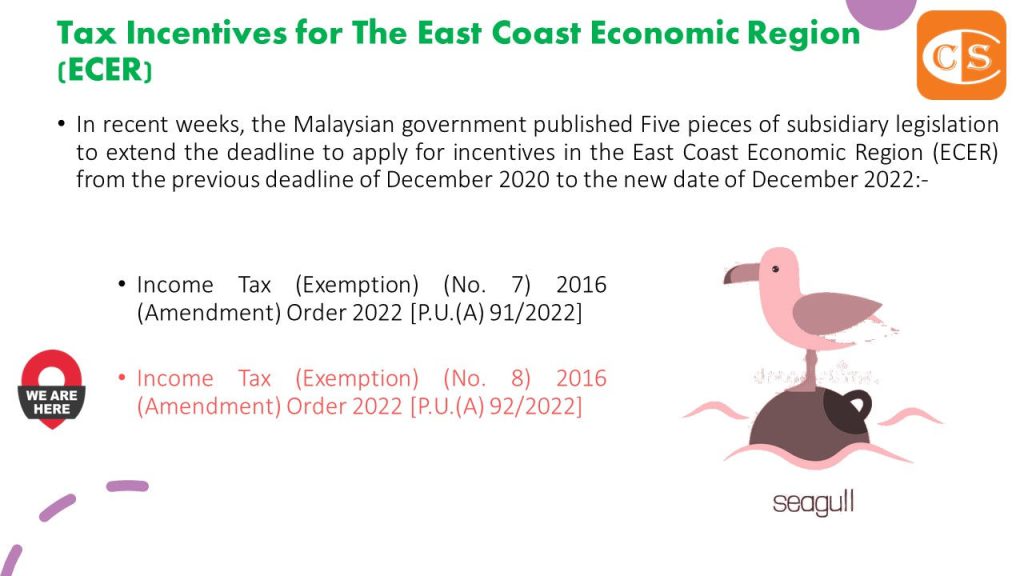 4. In recent weeks, the Malaysian government published Five pieces of subsidiary legislation to extend the deadline to apply for incentives in the ECER from the previous deadline of December 2020 to the new date of December 2022:-