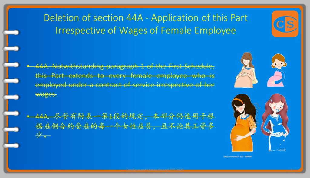 10. New Section 41A – Restriction on Termination of Pregnant Female Employee [新的第41A条 – 对终止怀孕女雇员雇佣合约的限制] https://lnkd.in/e75Y3WRY / https://lnkd.in/eZs76yAr