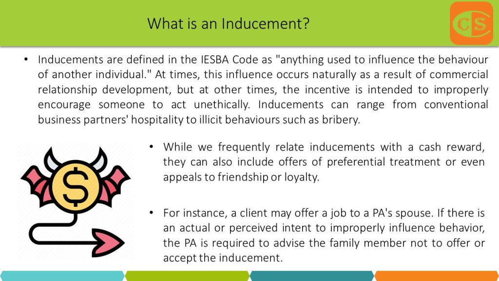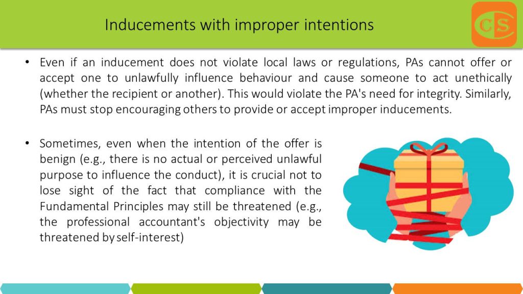 1. Inducements are defined in the IESBA Code as “anything used to influence the behaviour of another individual.”
