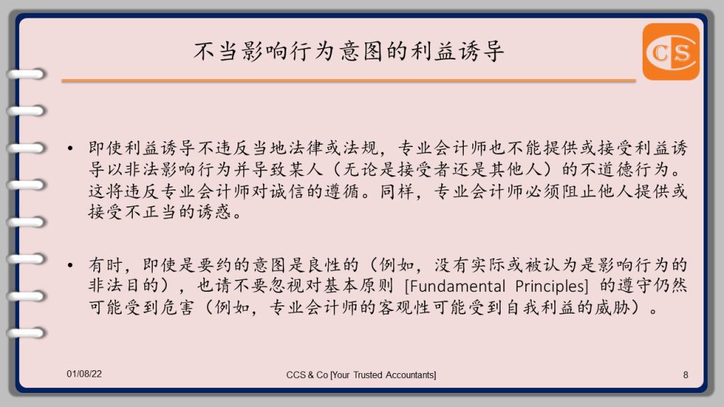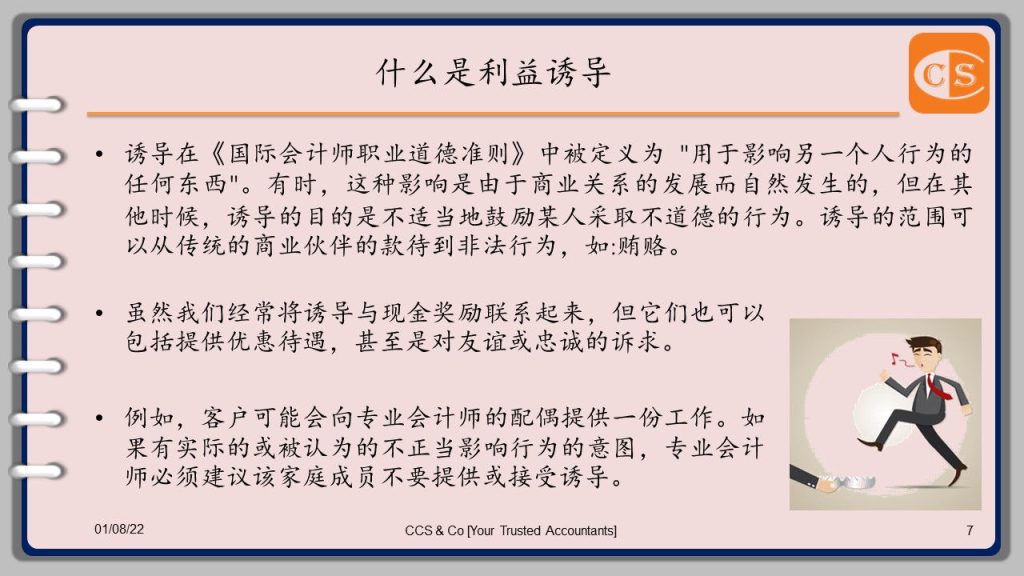 1. 诱导在《国际会计师职业道德准则》中被定义为 “用于影响另一个人行为的任何东西”。