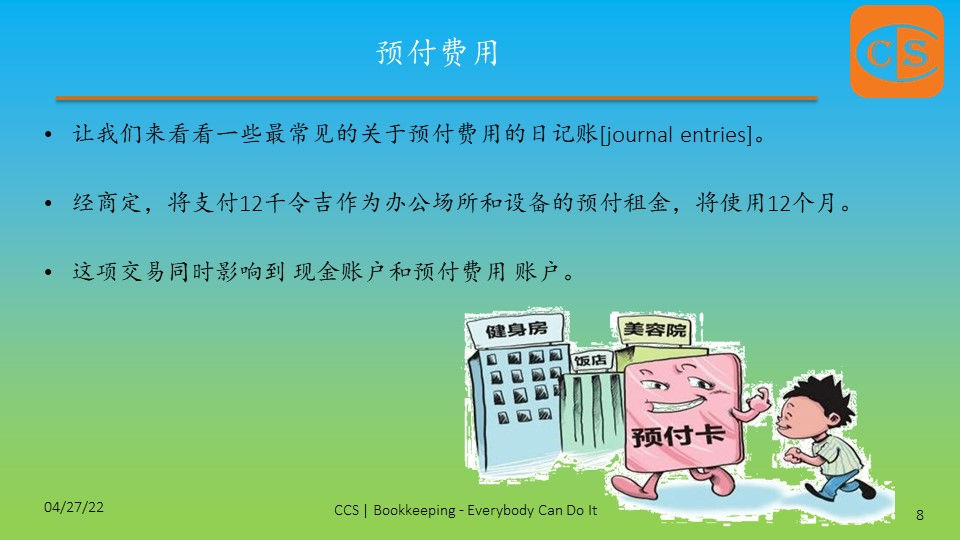1. 租金、保险和期刊是一些公司被要求提前付款的服务或商品的例子。