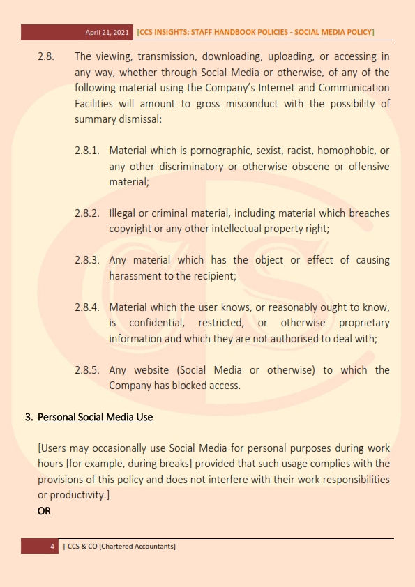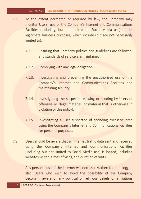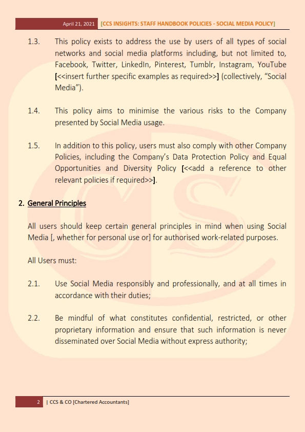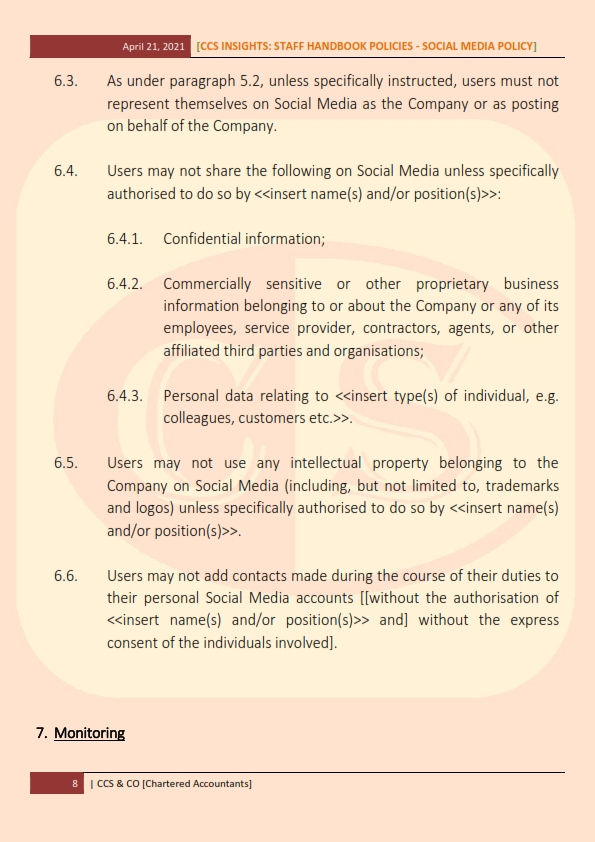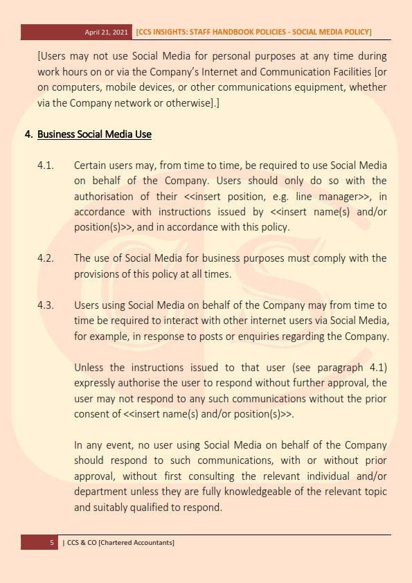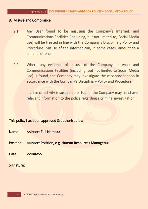 本社交媒体政策是作为一项独立的政策起草的,以管理雇员在工作期间对社交媒体平台的使用。此政策也可以与《通信、电子邮件和互联网政策》一起使用。