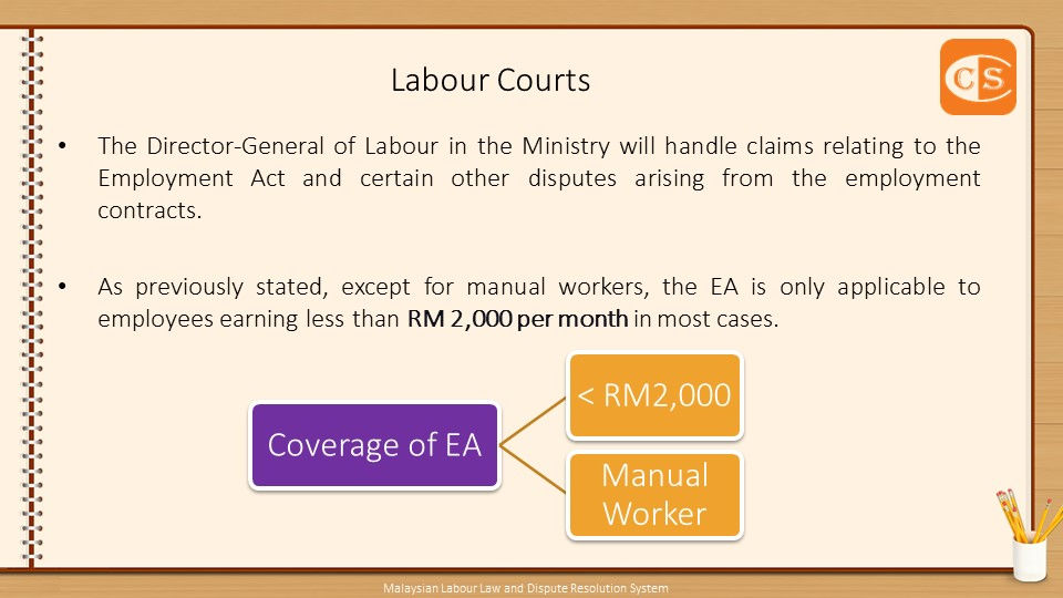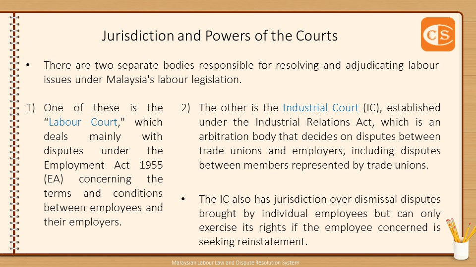 1. There are two separate bodies responsible for resolving and adjudicating labour issues under Malaysia’s labour legislation:-