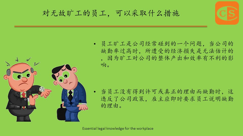 2. 当员工没有得到许可或真正的理由而缺勤时,这违反了公司政策,雇主应即时要求员工说明缺勤的理由。