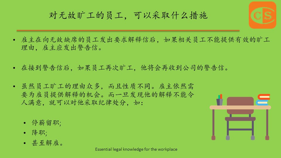 3. 虽然员工旷工的理由众多,而且性质不同。雇主依然需要为雇员提供解释的机会。