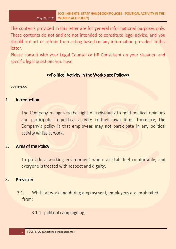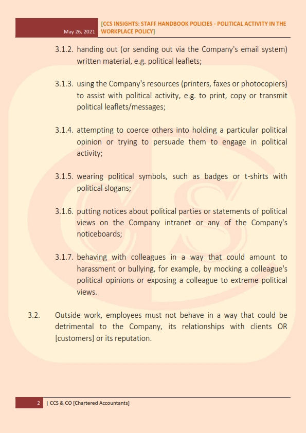 这项《工作场所中政治活动政策》,主要为员工就工作场所的政治活动,制定“要求”以及建立明确的行为准则。