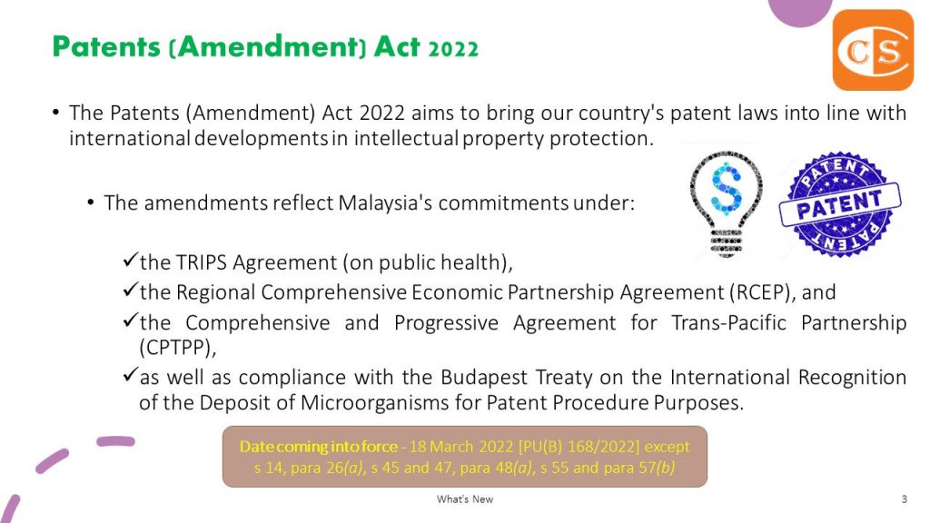 2. The Patents (Amendment) Act 2022 aims to bring our country’s patent laws into step with international developments in intellectual protection.