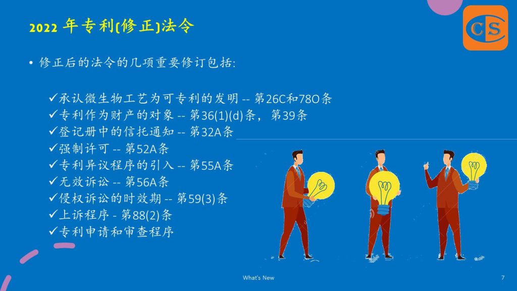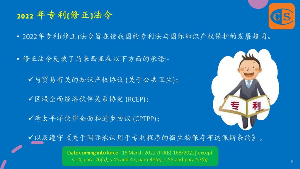 2. 2022年专利(修正)法令旨在使我国的专利法与国际知识产权保护的发展趋同。