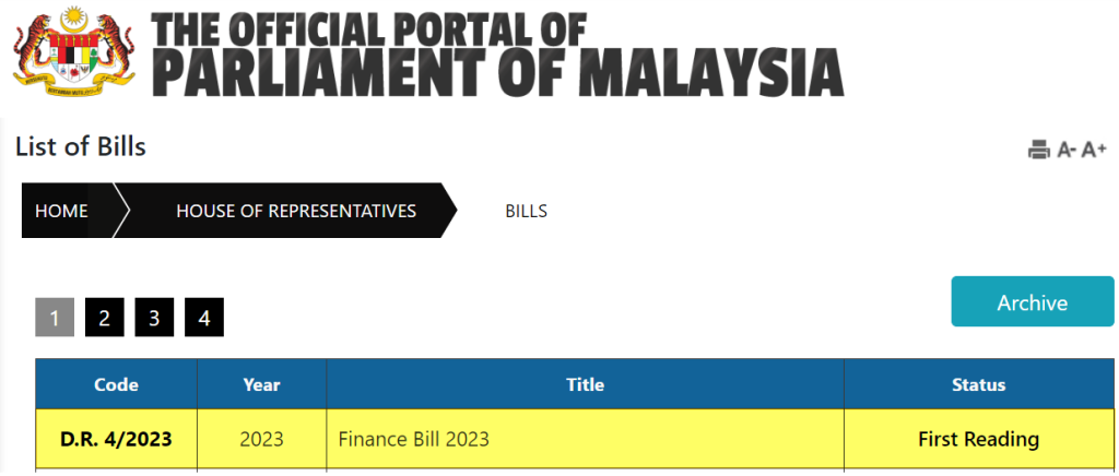 The Finance Bill 2023 was tabled for the first reading in the Dewan Rakyat today by YB Tuan Steven Sim Chee Keong – Timbalan Menteri Kewangan.