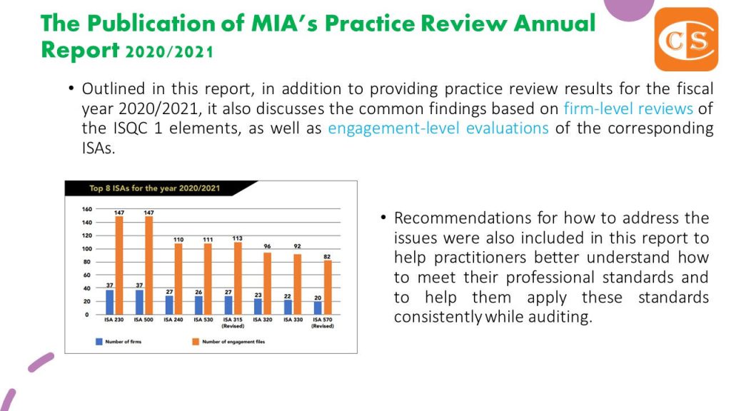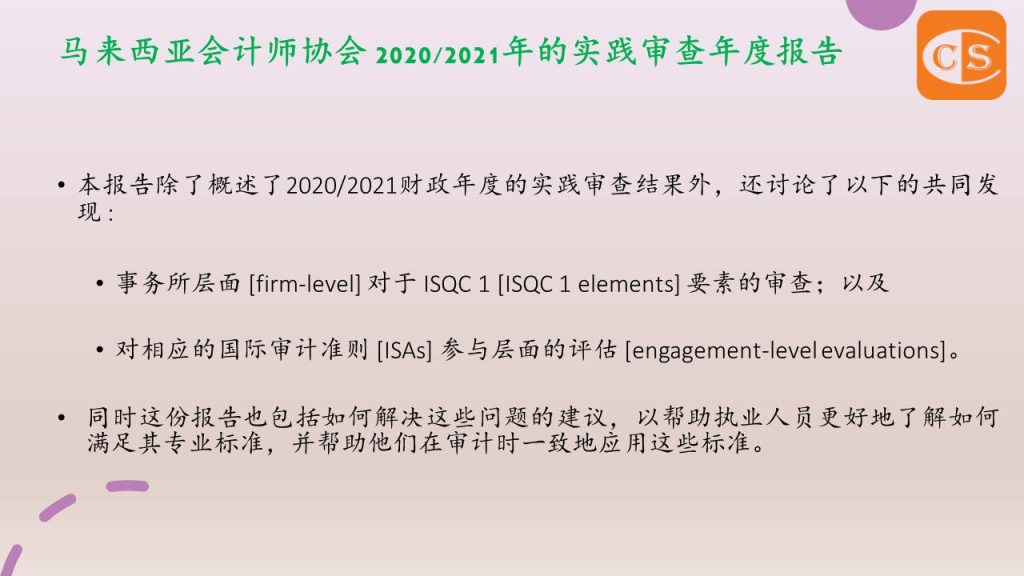 1. 马来西亚会计师协会于2021年10月1日公布了《 2020/2021 年实践审查(Practice Review)年度报告》。