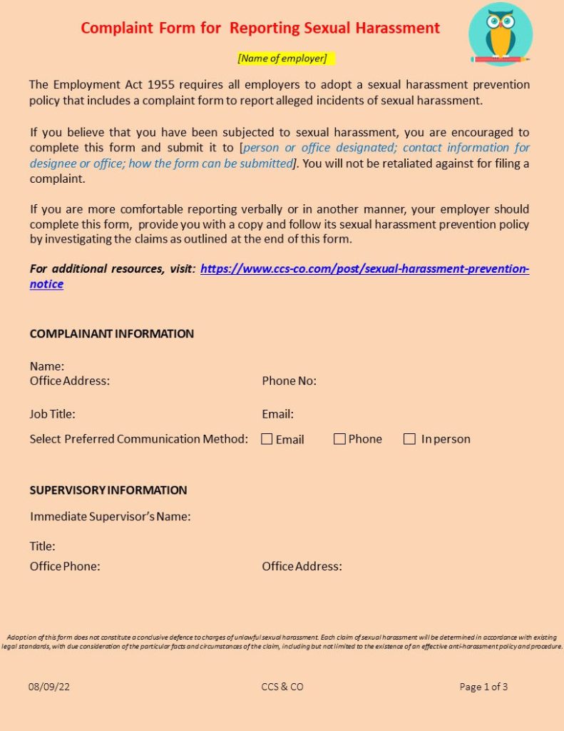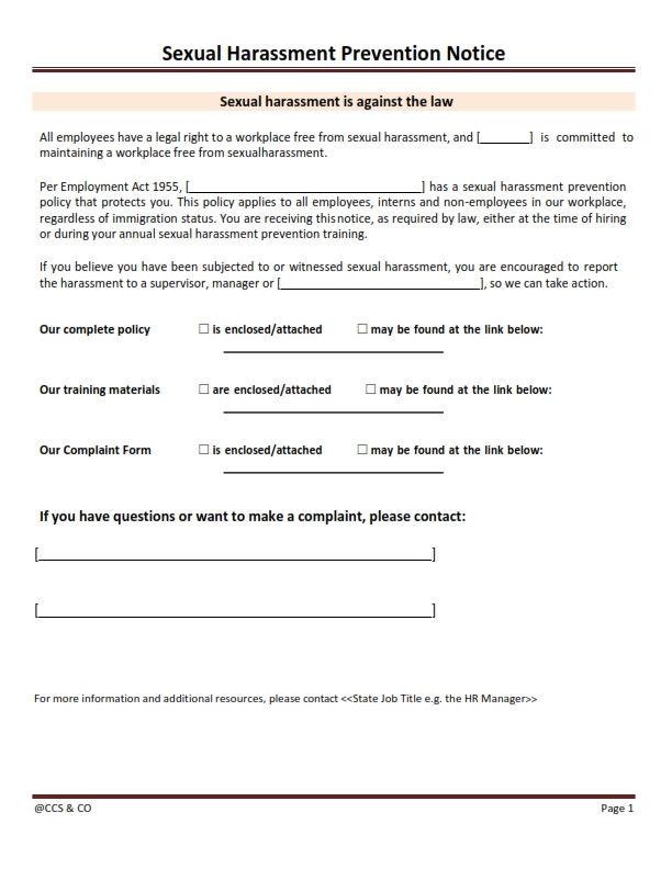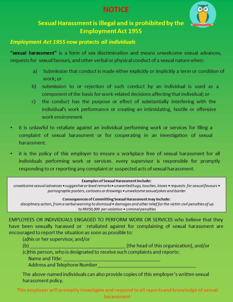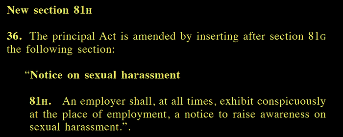 Employment (Amendment) Act 2022 introduces a new section which requires employers to conspicuously exhibit a notice to raise awareness of sexual harassment in the workplace.